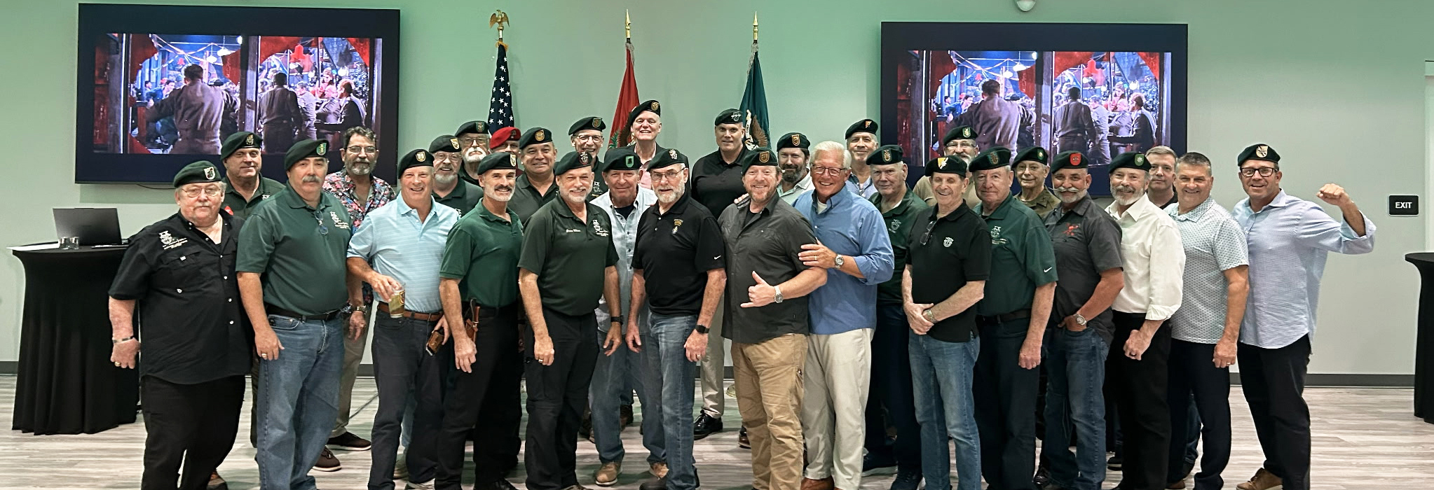 Recent Chapter activities included the annual Menton Day observance and Christmas Party, both held at the Chapter’s new Team House in Tampa. Menton Day was observed on 4 December and marked the first time the event was hosted at the Team House. Thirty-one Chapter “Longtabbers” were present to honor the origins of Special Forces and the legacy of Colonel Aaron Bank. The observance reflected the traditional Menton Day format, featuring assorted meats, cheeses, bread, gravy, and beer, with members bringing their own canteen cups and knives. One attendee arrived dressed in period-appropriate attire, with hopes that participation in this tradition will grow in future years.